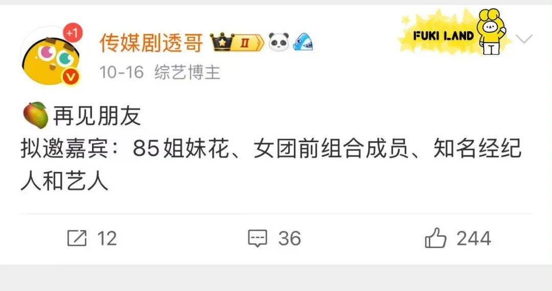 网传芒果台《再见朋友》已经过企划会了,现在就等着成型之后拟定嘉宾呢。