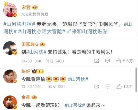 而宋茜的剧呢,底下站的是陈好、金晨和田嘉瑞: