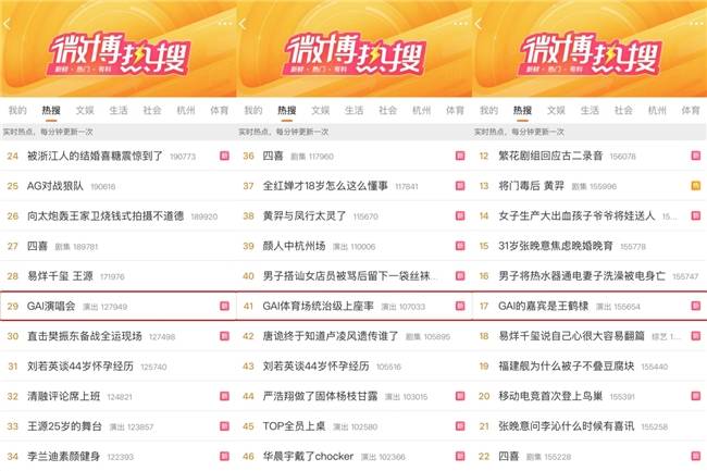 此前,《GAI进化论》巡演在2024至2025年间已走过十站万人体育馆,场场爆满,积累下超高口碑,为这次体育场级别的突破奠定坚实基础。从万人体育馆到五万人体育场,GAI用一场场登峰造极的进化演出展现着内在的巨大能量,《GAI进化论》体育场演唱会门票两次开票全部秒售罄,售票后官宣了此次的演出嘉宾有王鹤棣、C-BLOCK(盛宇、刘聪、功夫胖)、布瑞吉、威尔,强大阵容令歌迷无比惊喜,高呼票价超值!开演前夕重庆站GAI痛楼前人山人海,粉丝提前开唱狂欢,演出过程中#GAI演唱会##GAI体育场统治级上座率##GAI的嘉宾是王鹤棣#等话题冲上微博热搜,歌迷表示“种种迹象显示,这个GAI周延,越大的舞台表现越好,体育场的声场更开阔,效果比体育馆更好!”粉丝用实际行动证明了GAI的超强票房号召力,也用数据证明了中文说唱具备支撑大型商业演唱会的潜力。GAI则用一场超越性的演出证明:中文说唱已经进入全新的体育场时代。